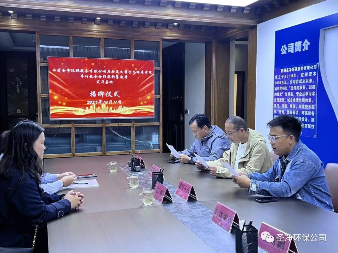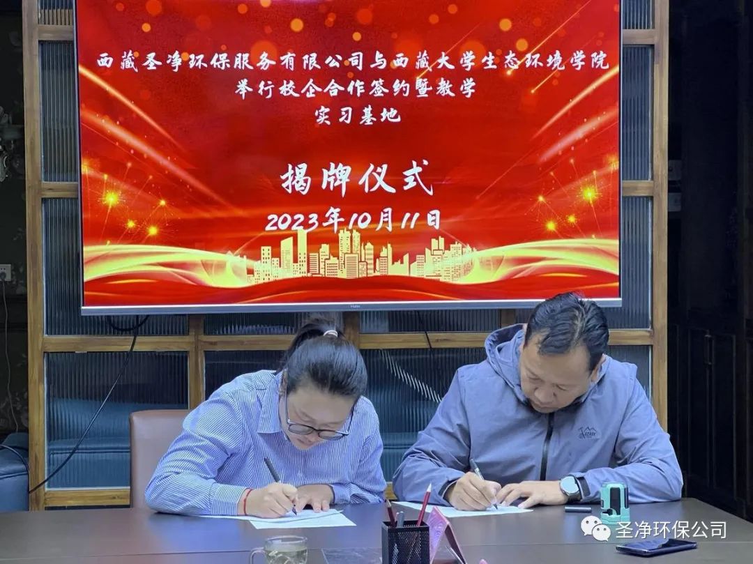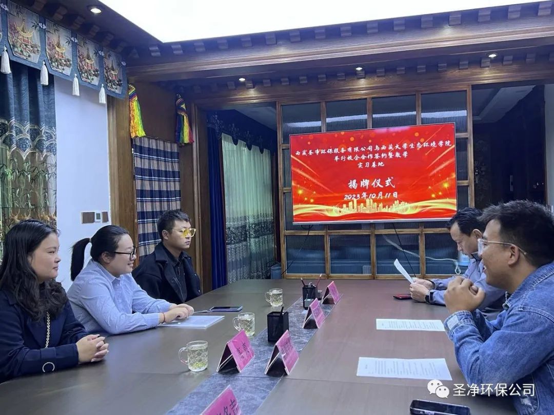 為進(jìn)一步加強(qiáng)學(xué)校與企業(yè)的合作,適應(yīng)產(chǎn)業(yè)發(fā)展的需求,共同做好畢業(yè)生的就業(yè)工作,并建立長期的人力資源供需協(xié)作關(guān)系,優(yōu)化企業(yè)的人力資源管理,充分發(fā)揮各自優(yōu)勢(shì),促進(jìn)雙方事業(yè)的共同發(fā)展。2023年10月11日,西藏圣凈環(huán)保服務(wù)有限公司與西藏大學(xué)生態(tài)環(huán)境學(xué)院校企合作簽約暨教學(xué)實(shí)習(xí)基地揭牌儀式在我司會(huì)議室舉行。