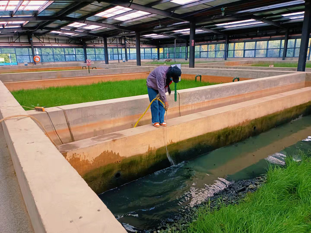 為了使污水處理系統(tǒng)正常運(yùn)行及出水水質(zhì)達(dá)標(biāo)排放,2021年10月16日,扎囊縣污水處理廠工作人員利用周末時(shí)間加班加點(diǎn)清洗室內(nèi)人工濕地池子周邊青苔、紫外消毒燈及巴士計(jì)量槽等。如不及時(shí)清洗青苔,青苔腐爛后會(huì)引起水質(zhì)發(fā)黑、發(fā)臭,氨態(tài)氮含量超標(biāo),水體中溶解氧含量偏低;不僅會(huì)影響水生動(dòng)物的色澤,而且會(huì)誘發(fā)水腫病等各類疾病。工作人員勤沖刷沖洗,確保水質(zhì)達(dá)標(biāo)排放,白天晚上的加班加點(diǎn),保質(zhì)保量的完成了工作,為當(dāng)?shù)厝罕娞峁┝烁蓛簟⒄麧嵉男l(wèi)生環(huán)境。