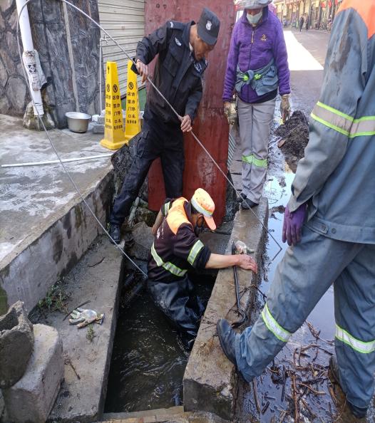 近期由于亞東縣強降雨,造成部分下水道被石子及垃圾嚴(yán)重堵塞,縣城道路出現(xiàn)大面積積水情況,即影響了市容市貌,同時給市民行車安全帶來了較大的安全隱患,因此,清理工作刻不容緩。從下雨的第二天上午開始,我公司環(huán)衛(wèi)工人積極開展工作,歷經(jīng)三天時間對聯(lián)通營業(yè)廳、糧食局等附近堵塞路段的下水道進行疏通和除淤清理工作。在積水路段,水位上升至人行道上,排水口位置不清楚,徒手疏通的情況對于環(huán)衛(wèi)工來說是家常便飯,一名環(huán)衛(wèi)工人說到“平時工作中我們都會配備火鉗等工具,但是碰到暴雨,排水口吸力較大,這些工具起不到作用,最快的方式就是用手去摸去掏”。經(jīng)過幾天的辛苦勞作,城區(qū)主次干道大部分路面積水基本排清,道路恢復(fù)原貌,消除了安全隱患,方便了市民生活。